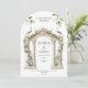 Faça uma grande declaração com este convite de casamento de luxo, apresentando um arco de estilo palácio de ornamentado enfeitado com flores elegantes. Projetado para celebrações opulentes, ele captura romance eterno e charme real — perfeito para um casamento de conto de fadas. Totalmente personalizável para refletir sua majestosa história de amor.