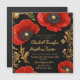 This luxury black, red, and gold floral wedding invitation features an opulent botanical design with rich red poppy-style flowers and elegant gold baroque accents on a deep black background. The dramatic contrast and refined ornamental details create a sophisticated and timeless aesthetic, perfect for formal and upscale weddings.