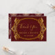 Espero que gostem desta coloração de água do vinho burgundy com uma tipografia de quadro de ouro com uma damáscara na parte de trás do convite.