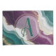 Soft flowing waves of teal and deep purple blend together with shimmering gold sparkles. A stylish abstract pattern with a modern and luxurious feel.