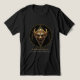 premium Golden Demon Mask design. Featuring a majestic, highly detailed mask centered within a sharp geometric triangle and golden circles, symbolizing protection and intense focus. The quote 'Power of Focus Silence is my Strength' makes it a perfect statement piece for those who lead with quiet confidence. Optimized for high-quality printing on black apparel and accessories."