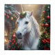 Um monocórnio branco majestoso se posiciona graciosamente ao lado de uma árvore de Natal em torre, seu casaco primitivo brilhando como neve recém-caída sob um brilho de boque suave. Sua cascata de homem em ondas sedas, adornada com sagrado delicado, A corna do unicórnio espirala para cima, brilhando suavemente com um brilho pearlescente, como se imbuído de magia de férias.