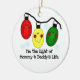 Um grupo de três luzes do feriado em uma corda com olhos e sorrisos e o texto que me lê "são a luz da vida das mamães e do pai" em ornamento customizáveis da lembrança.