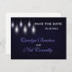 O fundo azul com luzes iluminantes nas ruas adora esta linda e moderna salva as fichas de data e posto com opções personalizadas. Convites de casamento disponíveis e cartões RSVP deste tema elegante de luz de rua em nossa loja.