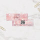 Miniplaca de exibição de brinco com modelo de logotipo personalizado centralizado e código QR em um fundo de rosa claro com luzes de brilho suaves. As guias de brinco podem ser ajustadas adicionando e removendo espaços no campo modelo e movendo todo o elemento na ferramenta design.
