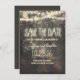 cartões salve a data rústicos com luzes noturnas na corda. Para casamento vintage no país ou jardim.