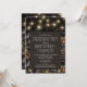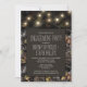 Lights + Hunting Camo Festa de noivado Invtions - apresenta um fundo de camuflagem de caça impresso com luzes de cordas brilhantes no topo.