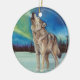 Um lobo só está urrando sob a aurora boreal colorida. Da "dança ilumina-se", a pintura acrílica original de Morgane. Para todos os amantes dos animais.