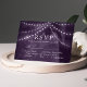 Complete sua suíte de casamento rústico na floresta com este encantador cartão de resposta roxo. Com uma majestosa árvore adornada com luzes cintilantes, este design complementa perfeitamente sua celebração inspirada na natureza. Os convidados podem responder facilmente com detalhes de presença e preferências de refeição, tornando o planejamento do casamento uma brisa.