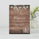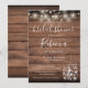 Um convite de chá de noiva rústico com lindas luzes de corda e potes de pedra com tipografia elegante, em um fundo de madeira rústica. Criado por Thisisnotme©