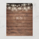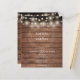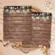 Com belas luzes de corda, seus nomes estão emoldurados por uma grinalda de louro acima da data do casamento e detalhes do local, em tipografia clássica e elegante sobre um fundo de madeira rústica, neste convite de casamento com orçamento acessível e com estilo. O lado de trás tem suas iniciais ou monograma emoldurado por uma grinalda de louro floral correspondente. Desenhado por Thisisnotme