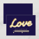 O amor escrito em iluminação de letreiro em um fundo azul escuro dá a este RSVP um brilho e glamour vintage. Role para baixo para ver a coleção completa de casamento. Se itens adicionais forem necessários para o seu evento, basta entrar em contato conosco em prettyfancyinvites@gmail.com com sua solicitação.