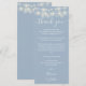 Um cartão de recepção de agradecimento de casamento azul empoeirado elegante com lindas luzes de corda. Personalizado com sua mensagem especial de agradecimento em tipografia estilosa. Um agradecimento especial para seus convidados. Concebido por Thisisnotme©