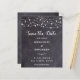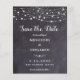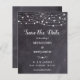 Reserve a Data! Anuncie o seu casamento a amigos e família com estes cartões salve a data rústicos de 'chalkboard' e 'strings light'. Personalizar com nomes, data do casamento, localização. Esse casamento exclusivo, salvando as cartas, vai causar uma impressão duradoura, seus hóspedes vão se certificar de salvar a data! COPYRIGHT © 2020 Judy Burrows, Black Dog Art - Todos Os Direitos Reservados. Luzes De String De Orçamento Slate Casamento Salvar A Data
