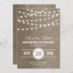 Casamento moderno de verão Salve o design de anúncio da data com luzes de cordas brilhantes simples penduradas no topo e uma mistura elegante de fontes modernas e caligráficas em um plano de textura falso impresso. Um design de pré-disquete simples e na moda, perfeito para o verão! Clique no botão PERSONALIZAR TI para personalizar fontes, mover texto e criar seu próprio design de convite exclusivo.