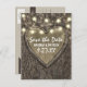 As luzes de cordas entalhadas em Cartões salve a data de árvore de carvalho - apresentam um fundo de latido de carvalho impresso com um coração esculpido na frente e luzes elegantes de cordas no topo. Consulte a coleção de correspondência de cheios abaixo.