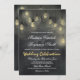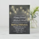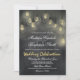 Prendendo As Lâmpadas Edison Luzes Vintage Convites De Casamento De Chalkboard. O fundo é um design de lousa escuridão com marcas de giz apagadas. As luzes estão penduradas no topo do convite. Estas são excelentes para um país rústico ou casamento com temas antigos. Basta adicionar seu próprio texto de convite para o casamento para a fácil mudança de modelo. Itens correspondentes:
