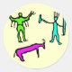 Imagem engraçada, corajosa e colorida de M-aaarghhh! o troglodyte alegre e seus amigos (ou são os troll loucos, funky?) em uma etiqueta seriam uma ideia legal, não?