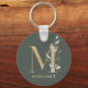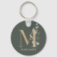 Florial do monograma da letra M. A letra M, de textura castanha ouro, acentuada com folhas compostas de cor aquosa verde, flores e pó de ouro. Persoalizado com o nome na fonte correspondente.