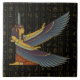 Azulejo cerâmico com a deusa Maat egípcia da verdade, justiça, equilíbrio e ordem. Este design de azulejo cerâmica apresenta Matemática com asas espalhadas sobre um fundo dos Antigos Hieróglifos Egípcios em cor esmaecida de ouro.
