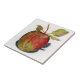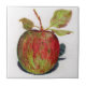 Um desenho a lápis a cores de uma maçã vermelha e verde enfeita este azulejo decorativo!