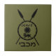 Uma representação "subjugada" militar negra do escudo de um Macabcabee e de duas lanças. O escudo é enfeitado por um leão e o texto lendo "Yisrael" (Israel) no alfabeto paleohebraico. O texto hebraico que lê "Maccabee" também aparece. Os Macabeus eram rebeldes judeus que libertaram Judeia do jugo do Império Seleúcio. Chanukkah não é apenas um festival de inverno-médio com velas e iguarias fritas, ela celebra uma vitória militar, e garante a liberdade religiosa, sobre o Império Seleúcio. Além disso, a revolta foi uma guerra civil envolvendo aqueles judeus que eram leais ao G-d e aqueles que tinham adotado o Hellenismo dos Seleucids.