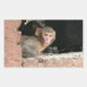 Um adesivo retangular de um macaco assustado com olhos grandes parecendo que está assustado por algo ou que de repente se lembra de algo.