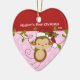 Os primeiros enfeites de natal do bebê caracterizam um macaco adorável do papai noel que veste um chapéu do papai noel que balança em um grupo da selva cor-de-rosa & branca fundo pontilhado em uma polca! Disponível em uma forma do coração em nossa loja! Personalize com sua informação do bebê e data e você são todos ajustam-se para ir! Presente datado maravilhoso da lembrança para Natal do seu bebê o ø.