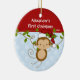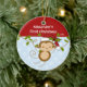 Os primeiros enfeites de natal do bebê caracterizam um macaco adorável do papai noel que veste um chapéu do papai noel que balança em um grupo da selva azul & branca fundo pontilhado em uma polca! Disponível em uma forma do coração em nossa loja! Personalize com sua informação do bebê e data e você são todos ajustam-se para ir! Presente datado maravilhoso da lembrança para Natal do seu bebê o ø.