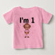 Um macaco bonito que guardaram um cupcake cor-de-rosa do fosco e o texto que me lê são 1 em t-shirt do primeiro aniversario, bodysuits, camisetas longas da luva, cartões, etiquetas, sacolas, e outros roupa e presentes bonitos do primeiro aniversario do macaco.