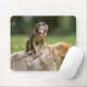 Mousepad com o macaco do bebê em mães suporta. Tão bonito, engatando um passeio e olhando para baixo no mundo.
