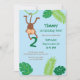 Este belo e colorido convite de aniversário é ideal para celebrar o segundo aniversário do seu filho. Ele apresenta um personagem macaco pendurado em uma braçadeira e segurando o número de aniversário. Deixa decorar a borda. Esta design divertida é perfeita para uma criança ativa que gosta de se divertir.