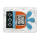 Um design de capricho apresenta uma face estilizada de macaco incluída num quadrado, rodeada por blocos negros de cor e abstrato. O fundo consiste em brancos e cinzentos texturizados, melhorando a composição lúdica.