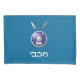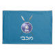 Uma representação do escudo de um Maccabee e duas lanças. O escudo é enfeitado por um leão e o texto lendo "Yisrael" (Israel) no alfabeto paleohebraico. O texto hebraico moderno que lê "Maccabee" também aparece. Os Macabeus eram rebeldes judeus que libertaram Judeia do jugo do Império Seleúcio. Chanukkah não é apenas um festival de inverno-médio com velas e iguarias fritas. celebra uma vitória militar, e garante a liberdade religiosa, sobre o Império Seleúcio. Além disso, a revolta foi uma guerra civil envolvendo aqueles judeus que eram leais ao G-d e aqueles que tinham adotado o Hellenismo dos Seleucids.
