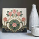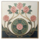 A fresh take on classic Mackintosh-inspired design, this elegant ceramic tile features stylized roses arranged like a faux stained-glass panel. Clean geometric framing, bead-chain details, and sweeping curved stems create a refined Art Nouveau look with a hint of Art Deco structure. The soft ivory background and muted palette of deep teal, sage green, and dusty blush pink are finished with warm metallic-gold outlines for a layered, dimensional effect. Perfect as a decorative wall accent, kitchen backsplash detail, bathroom feature tile, fireplace surround, or gift for lovers of vintage floral design.