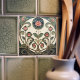 Bring timeless Art Nouveau elegance to your space with this Mackintosh-inspired floral tile. A geometric “stained glass” medallion crowns stylized roses and sweeping leaves, outlined in warm metallic-gold tones for a carved, architectural look. The refined palette of teal, sage, dusty pink, and soft ivory makes it a perfect accent for bathrooms, kitchens, fireplace surrounds, gallery walls, or decorative tile displays. A beautiful gift for lovers of Art Nouveau, Art Deco geometry, and classic botanical design.