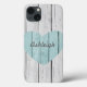 Madeira Branca-Chic Rústica com coração azul personalizado com o nome do caso