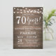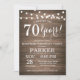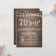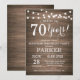 Rustic Surprise 70 de Aniversário Invitation Wood Background com Luzes De Cordas. 13 15 16º 18º 20 21rua 30 40º 50º 60º 80 de 70 100º, qualquer idade. Aniversário Adulto. Mulher ou Festa de aniversário masculina. Para mais personalização, clique no botão "Personalizar" e use nossa ferramenta de design para modificar este modelo.