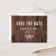 Casamento de país russo personalizado salve os cartões postais de data com fundo de madeira de celeiro. Personalize facilmente este casamento com texturas rústicas, salve os cartões postais com os detalhes do seu casamento.