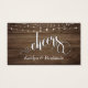 Trate seus convidados de recepção de casamento para um coquetel ou dois com a ajuda desses ingressos. As sobreposições de texto elaboradas são projetadas usando uma fonte de script de rico. Na frente está "Este é sobre nós" e na parte de trás está "aplausos". Use meus campos de modelo para personalizar as cartas com seus detalhes pessoais. O fundo está coberto por um padrão horizontal de madeira castanha rústica, que foi acentuado com fios de luzes brilhantes brancas cintilantes. Excelente para celebrações de casamentos casuais ou de montanha. Isso faz parte de um conjunto crescente cheio de designs coordenadores. // 73 // Concebida por Melody Watson para Paper Muserie.