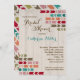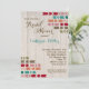 Bonito convite com padrão de flecha em fundo de madeira rústica.