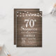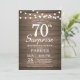 O convite rústico do aniversário do 70 da surpresa com corda ilumina o fundo de madeira. 13o 15o 16o 18o 2ø 30o 40th 50th 60th 90 100th do 80 do 70, alguma idade. Para uma personalização mais adicional, clique por favor "personalizam-no" botão e usam-nos nossa ferramenta de design para alterar este modelo.