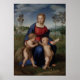 Esta pintura está exposta no Museu Uffizi em Florença. Mostra a Virgem Maria (conhecida como Madonna), Jesus, e o Santo John. Mary está sentada sobre uma pedra e veste um vestido vermelho com uma manta azul sobre ela. Ela vigia de forma protetora as duas crianças. O santo John, o menino à esquerda com o cabelo encaracolado de ouro, está vestido com peles de animais. Ele segura um pássaro goldfinho em sua mão. Ele quer dar o taco de ouro a Jesus que está tocando a cabeça do taco de ouro. Jesus está perto da mãe e coloca o pé carinhosamente no pé da mãe. As três figuras dessa pintura são mostradas em forma piramidal, o chamado triângulo Renascentista, composição popular no início do Renascimento para representar simetria em uma pintura. Ao fundo, você pode ver uma paisagem azul e verde com arbustos, árvores, colinas, um rio, uma ponte, um castelo, e algumas casas. Uma discussão mais detalhada desta pintura pode ser encontrada em https://www.tripimprover.com/blog/madonna-of-the-goldfinch-by-raphael.