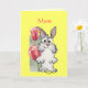 Diga Feliz Dia de as mães com coelho: Um coelho de cartoon e algumas bonito tulipas de aquarela em um brilhante fundo ensolarado amarelo dizem: "Mãe" Dentro de "Você é meu coelhinho. Feliz Dia de as mães!" Este cartão pode ser completamente personalizado. Altere o texto para seus próprios discursos especiais ou desejos de aniversário ou feriados ou personalize com o nome de alguém.