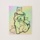 quebra-cabeça com mãe e 4 gatinhos com fundo arco-íris