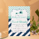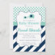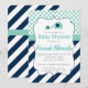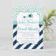 Elefante de mamãe azul e lacerante e convite para chás de fraldas com listras e bolinhas.