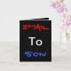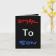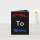 Cartão divertido para o seu filho. O texto diz "Email to Son" "Dog in Kennel" (Não feliz) chegando ao seu lugar amanhã. Mãe e dadxx Página de trás F—K
