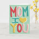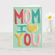 Um cartão de dia de as mães para a sua mãe, este cartão contém elementos ilustrados e escritos à mão em cor bonito, vermelho, amarelo pincelado num fundo de menta pálido. A mensagem diz "Mãe, eu coração-te" na frente com fácil personalização do texto na dentro para criar sua própria mensagem especial.