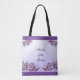 Lilases adoráveis são o tema desta elegante mãe do saco de tote do Groom com uma borda de molas lilás cor-de-rosa e mauve em um plano de fundo púrpura claro e gradiente. Personalize o texto para se adequar à sua ocasião especial.