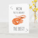 Faça a mãe feliz com esta Dia de as mães com um belo cartão inspirado no camarão! Personalize a palavra "Mãe" para qualquer outro nome ("Mãe", "Nana", etc.). Esta carta apresenta um gráfico adorável de camarão no estilo pintado com aquarela com uma simples tipografia com a piada caprichosa "Mãe, você é o melhor."